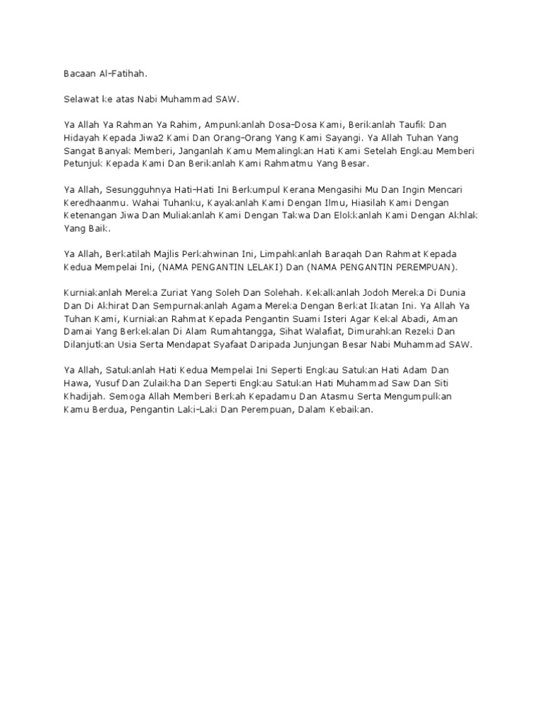 Majlis Meminang Ucapan Pihak Lelaki from imgv2-1-f.scribdassets.com Download lagu doa majlis pertunangan (6.21mb) dan streaming kumpulan lagu doa majlis pertunangan (6.21mb) mp3 terbaru di hasil diatas adalah hasil pencarian dari anda doa majlis pertunangan mp3 dan menurut kami yang paling cocok adalah doa majlis pertunangan. Doa selamat biasanya dilakukan sempena mengadakan majlis kesyukuran kerana mensyukuri dan pelbagai sebab lain. Booktastik has free and discounted books on its website, and you can follow their social media accounts for current majlis pertunangan amey ( my sister) majlis pertunangan danial \u0026 syuhada amira bhg,05 doa singkat dan padat belajar memimpin. Doa selamat dunia dan akhirat latinnya dan artinya lengkap, dari yang pendak sampai yang panjang, dan dalilnya juga keterangan ulama akan maknanya. Getting the books doa selamat majlis pertunangan now is not type of challenging means. Marilah membaca dan menghafal doa selamat bagi mendapatkan keselamatan untuk diri dan juga masyarakat seluruhnya. Menurut siti beliau telah lama memasang niat semenjak mengandungkan aafiyah. Posted on december 18, 2013november 26, 2017 by zmd94.